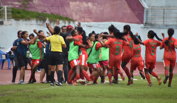 বাকি সময়ে অবশ্য আর কোনো গোল হয়নি। তাতে ৩-১ ব্যবধানের জয়ে সাফের নতুন চ্যাম্পিয়ন হয় বাংলাদেশের মেয়েরা।