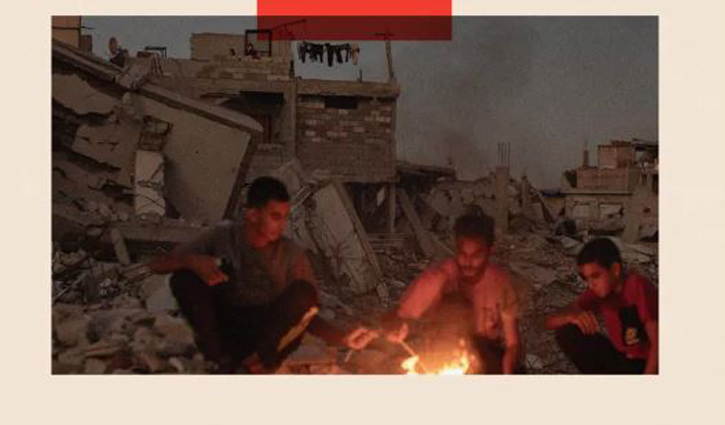 আগুন পোহাচ্ছে বিধ্বস্ত গাজার ফিলিস্তিনিরা