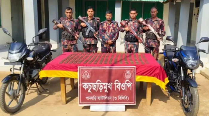 অভিযানিক কার্যক্রমে উদ্ধার করা হয় বিদেশি পিস্তল ১টি, ওয়ান গান ১টি, একনলা বন্দুক ১টি, কার্তুজ ৫ রাউন্ড এবং বার্মিজ চাকু ১টি।