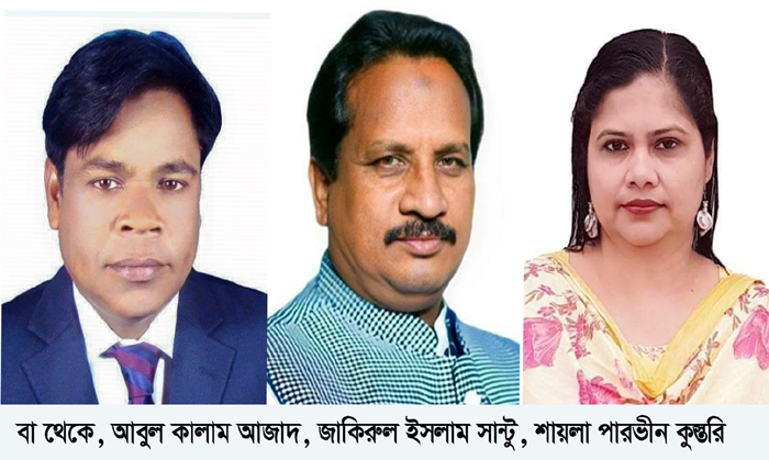 রাজশাহী-৪ আসনের এমপি আবুল কালাম আজাদ, তার স্ত্রী ও তাহেরপুর পৌরসভার মেয়র খন্দকার সায়লা পারভীন, উপজেলা চেয়ারম্যান জাকিরুল ইসলাম সান্টুসহ