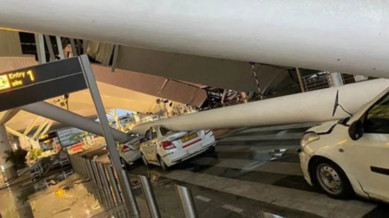প্রবল বর্ষণে ভেঙে পড়েছে দিল্লি বিমানবন্দরের এক নম্বর টার্মিনালের ছাদ। এতে ছাদের নিচে থাকা বেশ কয়েকটি গাড়ি ক্ষতিগ্রস্থ হয়েছে। এখন