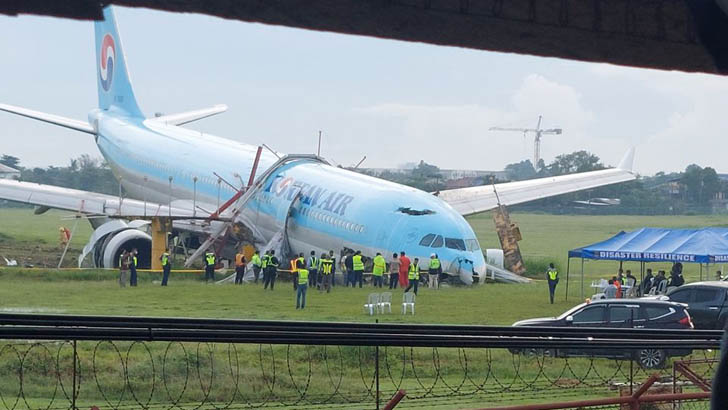 দুযোর্গপূর্ণ আবহাওয়ার মধ্যে অবতরণ করতে গিয়ে ফিলিপাইনের রানওয়ে থেকে ছিটকে পড়ে অল্পের জন্য বড় ধরনের দুর্ঘটনা থেকে রক্ষা পেল কোরিয়ার
