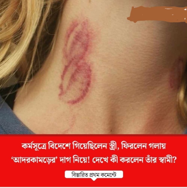 কর্মসূত্রে লাস ভেগাস গিয়েছিলেন মহিলা। ফিরলেন গলায় আদর কামড়ের দাগ নিয়ে! আর তা দেখেই সন্দেহ জাগল স্বামীর মনে। তার পর