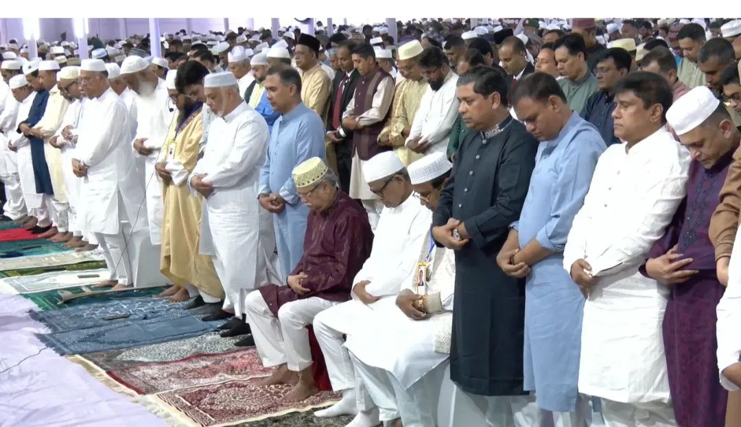 দীর্ঘ ৩৬ বছর পর রাজধানীর জাতীয় ঈদগাহ ময়দানের প্রধান জামাতে একই সঙ্গে নামাজ আদায় করেছেন রাষ্ট্রপতি মোঃ সাহাবুদ্দিন এবং প্রধানমন্ত্রী