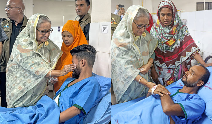 কুর্মিটোলা হাসপাতালে আহতদের দেখে অশ্রুসজল প্রধানমন্ত্রী