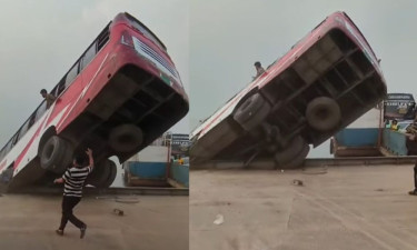 ফেরিতে ওঠার সময় নদীতে যাত্রীবাহী বাস, বহু হতাহতের শঙ্কা