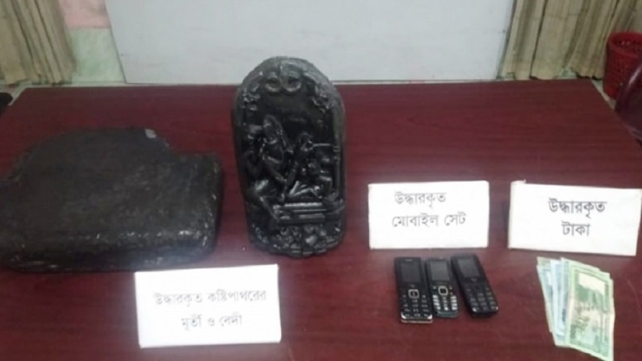 আদমদীঘিতে কষ্টি পাথরের মূর্তি ও বেদীসহ তিন চোরাকারবারী গ্রেপ্তার