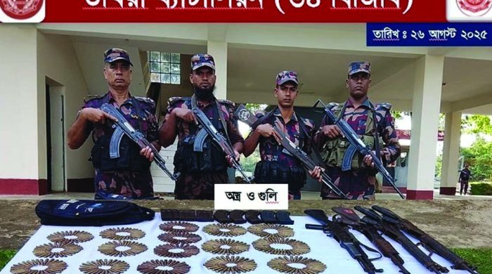 নাফ নদে বিজিবির অভিযান, বিপুল পরিমাণ অস্ত্র ও গোলাবারুদ উদ্ধার
