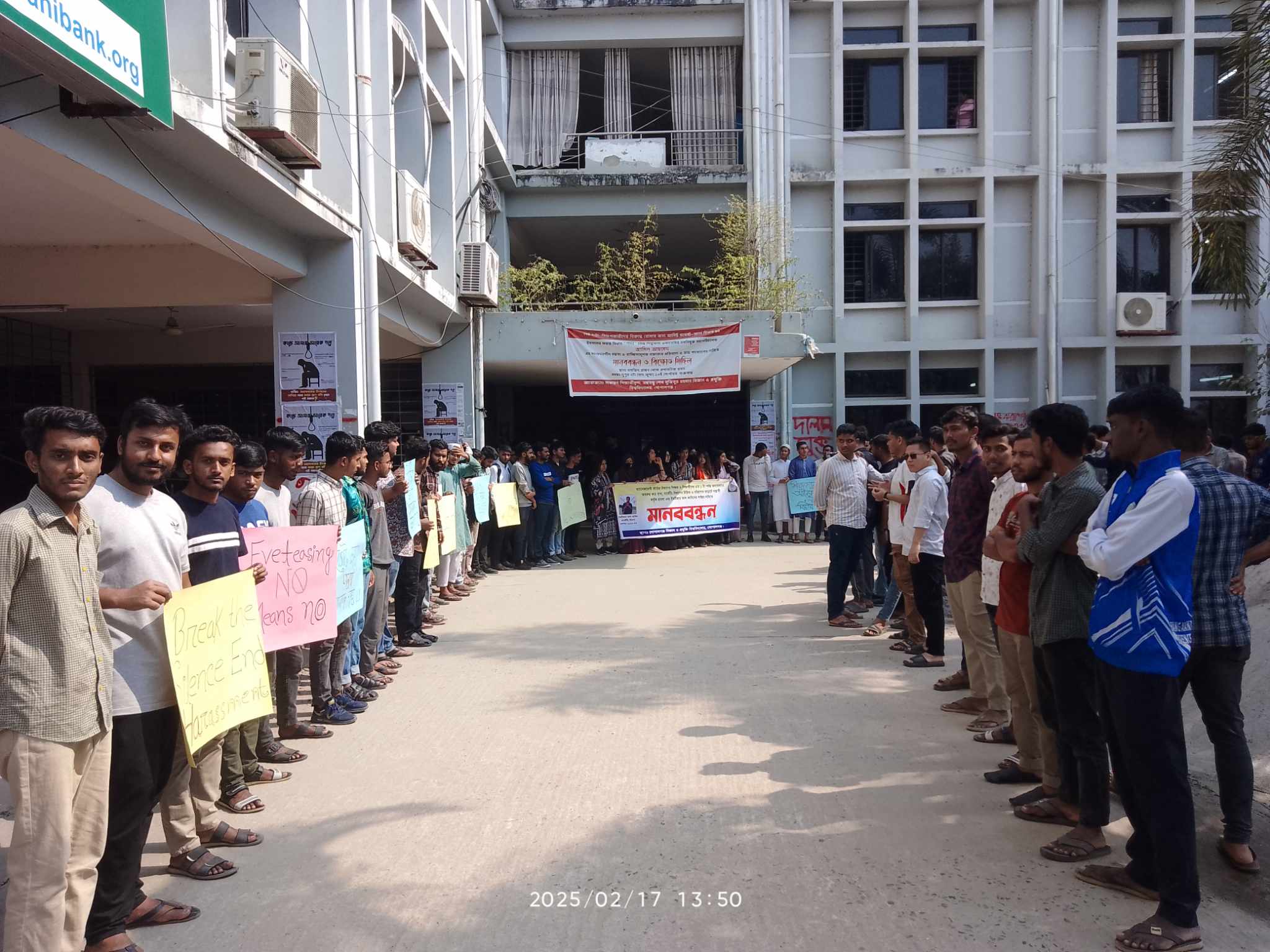 ইভটিজারের শাস্তির দাবি এবং শিক্ষক-শিক্ষার্থীর ওপর হামলার প্রতিবাদে মানববন্ধন