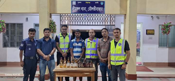 মৌলভীবাজার জেলা পুলিশের মাদক বিরোধী বিশেষ অভিযানে ২০৫ পিস ইয়াবা ট্যাবলেট, ৯ বোতল বিদেশি মদ এবং ১৫০ গ্রাম গাঁজাসহ ৪