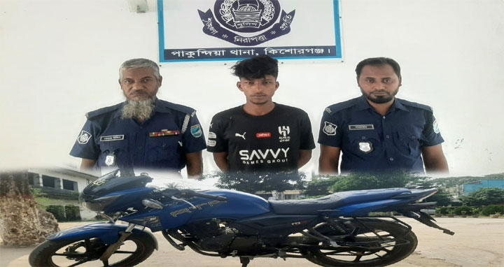 পাকুন্দিয়ায় চোরাই মোটরসাইকেলসহ গ্রেপ্তার ১