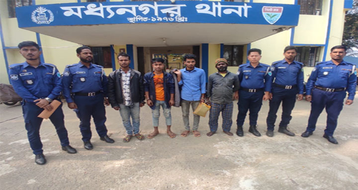 মধ্যনগরে ৯০০ কেজি চিনিসহ ৪ চোরাকারবারি গ্রেপ্তার
