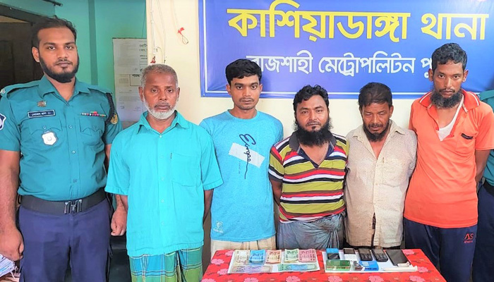 রাজশাহী মহানগরী’র কাশিয়াডাঙ্গা থানার গোবিন্দপুর এলাকায় অভিযান চালিয়ে নগদ অর্থ ও তাসসহ ৫ জুয়াড়িকে আটক করেছে কাশিয়াডাঙ্গা থানা পুলিশ। গতকাল