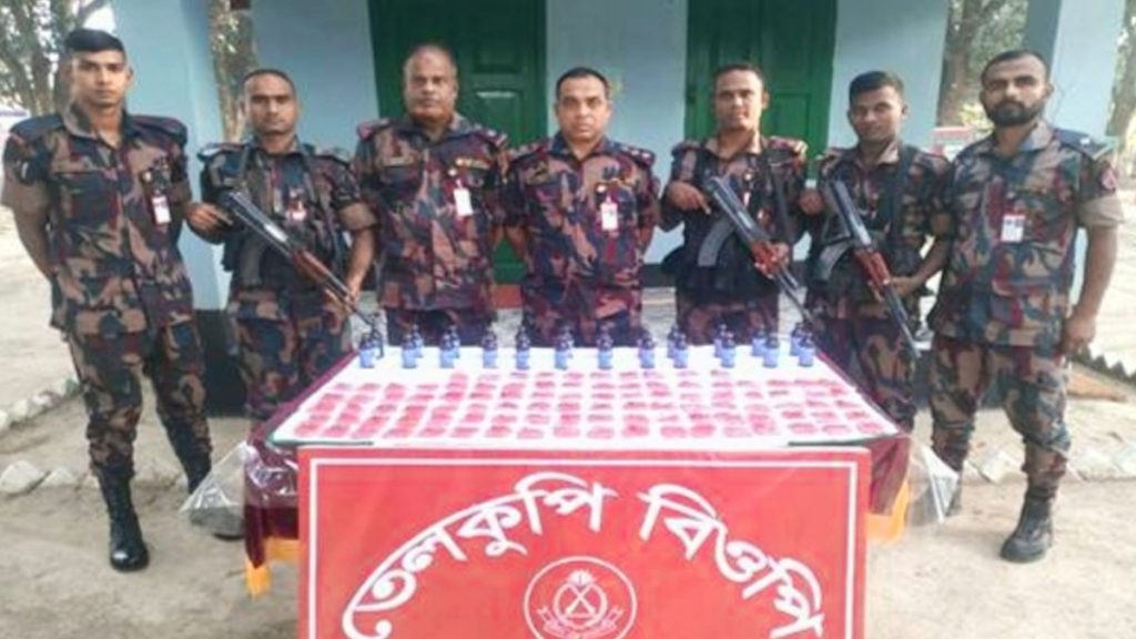 চাঁপাইনবাবগঞ্জের সীমান্ত এলাকা থেকে ৬০ লাখ টাকা মূল্যের হেরোইন, ৩০ হাজার পিস ইয়াবা ও ২৪ বোতল ভারতীয় ফেনসিডিল উদ্ধার করেছে