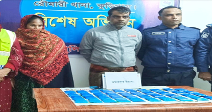 কুড়িগ্রামের রৌমারীতে ৮ হাজার পিস ইয়াবাসহ মোঃ জাহার আলী ফকির(৪২) ও মোছাঃ রাশেদা বেগমকে গ্রেফতার করেছে পুলিশ। জানা গেছে, বৃহস্পতিবার