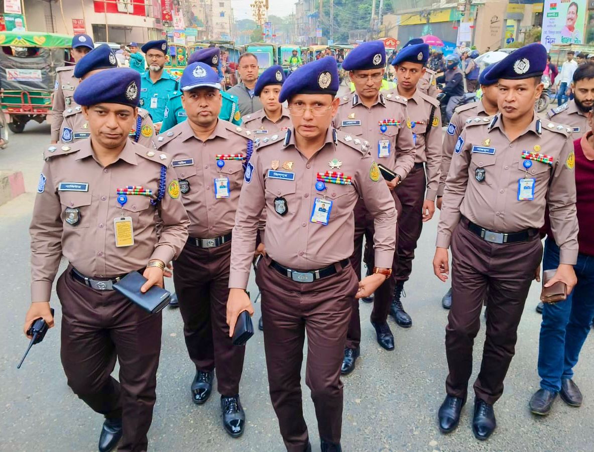 রাজশাহীর ১১ পয়েন্টে পুলিশের ফোর্স মোবিলাইজেশন ড্রিল