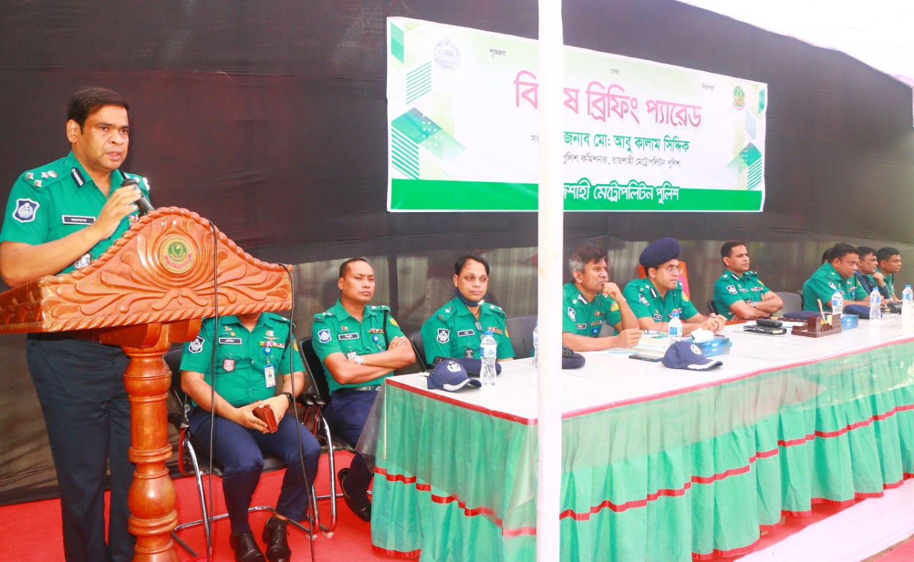 রাজশাহী মেট্রোপলিটন পুলিশ লাইন্স-এ আরমপিতে কর্মরত অফিসার ও ফোর্সদের নিয়ে কেন্দ্রীয়ভাবে বিশেষ ব্রিফিং প্যারেডের আয়োজন করা হয়। এতে সভাপতিত্ব করেন
