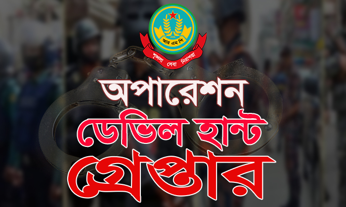 রাজশাহী মহানগরীতে যৌথ বাহিনীর অভিযান অপারেশন ডেভিল হান্টের ১ জনসহ রাজশাহী মেট্রোপলিটন পুলিশের (আরএমপি) থানা ও ডিবি পুলিশের অভিযানে মোট