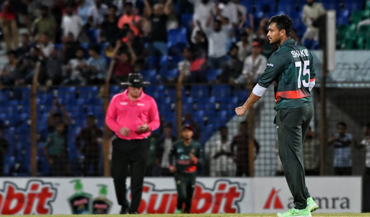 সাকিবের ঘূর্ণিতে উইকেটের দেখা পেলো বাংলাদেশ
