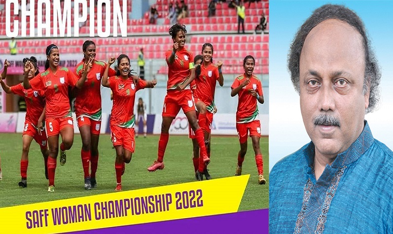 সাফ নারী চ্যাম্পিয়নশিপের ফাইনালে নেপালকে হারিয়ে চ্যাম্পিয়ন হওয়ায় বাংলাদেশ নারী ফুটবল দলের সকল খেলোয়াড়, কোচ, কর্মকর্তাবৃন্দ ও সংশ্লিষ্ট সকলকে প্রাণঢালা