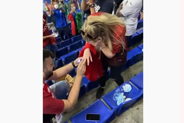 ফুটবল গ্যালারিতেই বিয়ের প্রস্তাব, বাগদান যুগলের (ভিডিও)