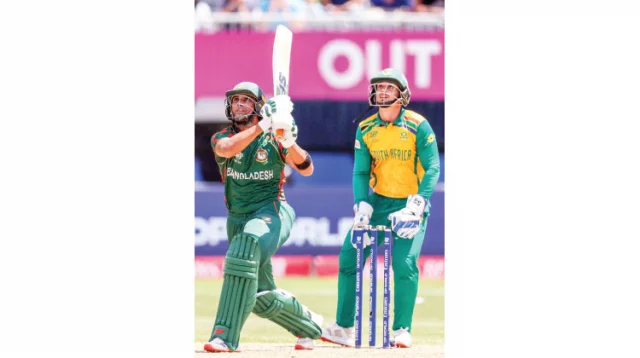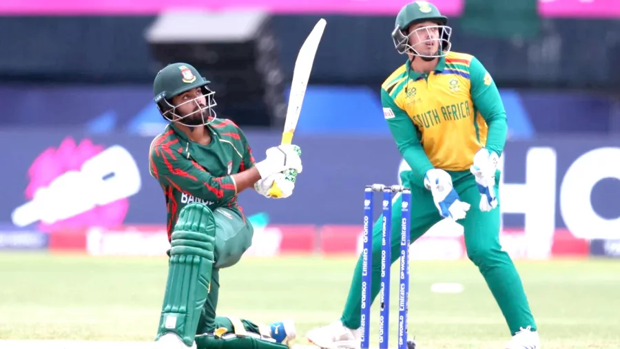 দক্ষিণ আফ্রিকার দেওয়া ১১৪ রান তাড়ায় শেষ দুই বলে দরকার ৬, মাহমুদউল্লাহ লং অনে উড়িয়ে মারলেন কেশব মহারাজের বল। কিন্তু