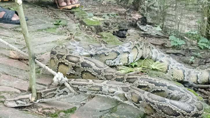 বাগেরহাটের শরণখোলায় সুন্দরবন সংলগ্ন বগী গ্রামের এক গৃহস্থের বাড়ি থেকে একটি অজগর সাপ উদ্ধার করা হয়েছে। শুক্রবার ২২ সেপ্টেম্বর সকালে