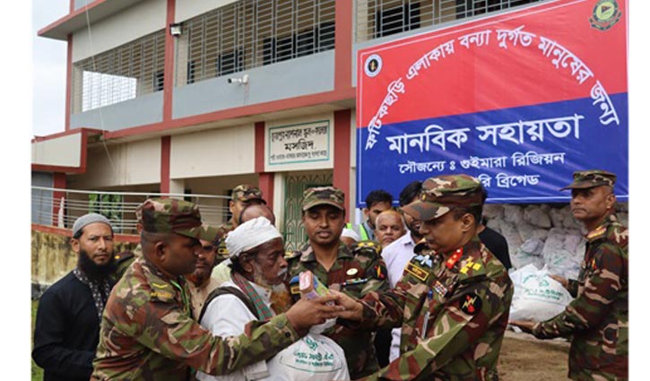 বন্যাদুর্গত ৬৫৭৫ পরিবারের মাঝে ত্রাণ দিয়েছে বিজিবি