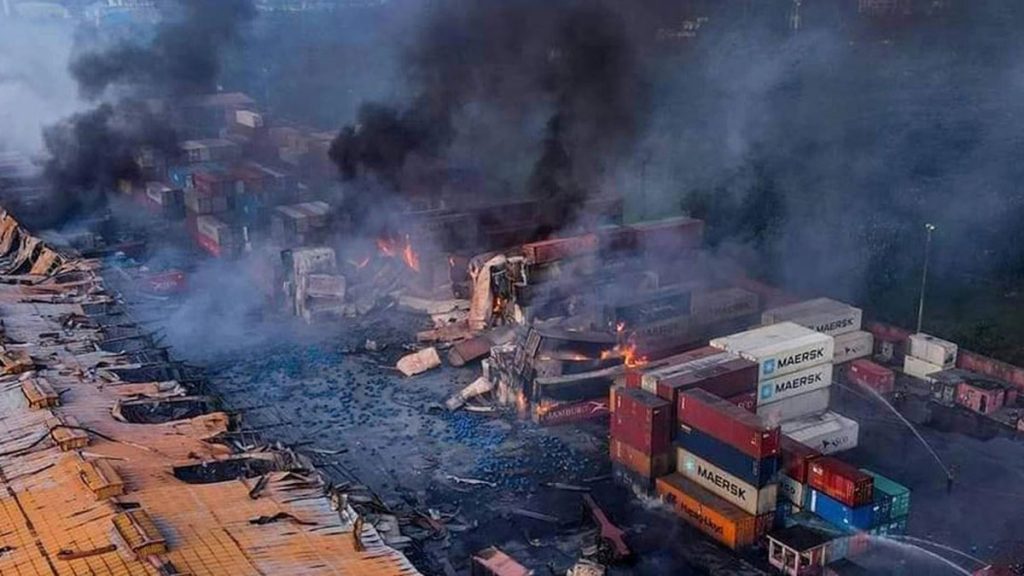 চট্টগ্রামের সীতাকুণ্ডে বিএম কনটেইনার ডিপোতে ভয়াবহ বিস্ফোরণ ও অগ্নিকাণ্ডের ঘটনায় প্রায় দুই কোটি ডলার বা ২১২ কোটি টাকার রপ্তানি পণ্য