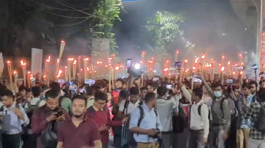 শেখ হাসিনার সর্বোচ্চ শাস্তির দাবিতে বিক্ষোভ-মশাল মিছিল