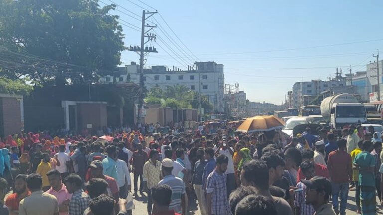 গাজীপুরে শ্রমিকদের মহাসড়ক অবরোধ, দীর্ঘ যানজট