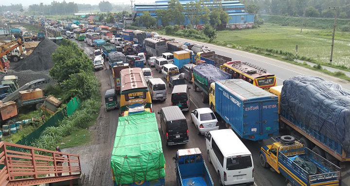 ঢাকা-টাঙ্গাইল মহাসড়কে দীর্ঘ যানজট