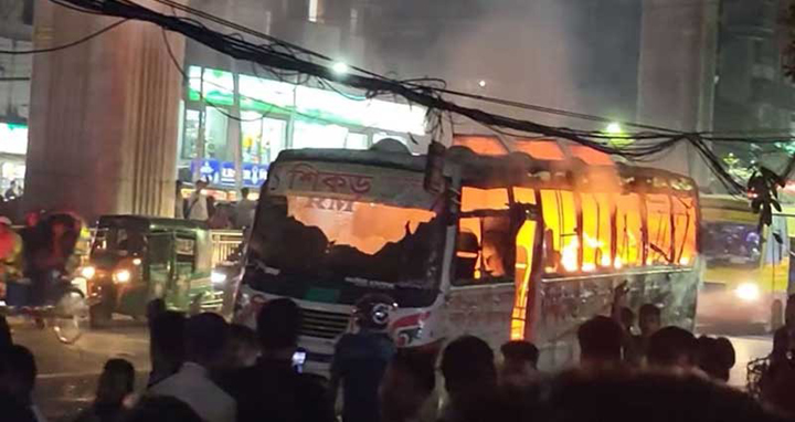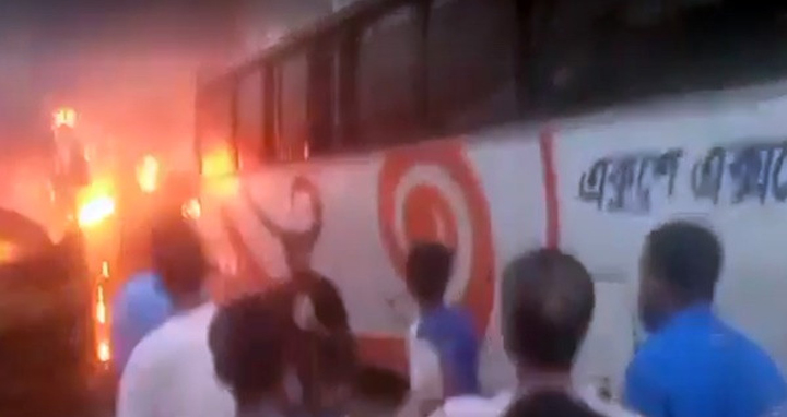 রাজধানীতে একসঙ্গে ৩ বাসে আগুন