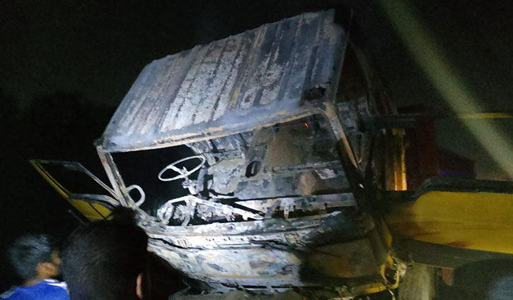 গাজীপুরে সিমেন্টবাহী ট্রাকে আগুন
