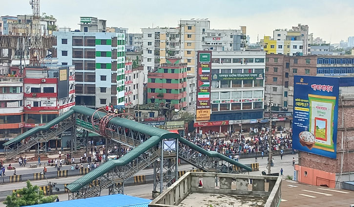 বিক্ষোভ মিছিল নিয়ে কেন্দ্রীয় শহীদ মিনারের দিকে যাচ্ছেন আন্দোলনরত শিক্ষার্থীরা। শনিবার (৩ আগস্ট) দুপুর আড়াইটার পর সায়েন্সল্যাব মোড় থেকে বিক্ষোভ
