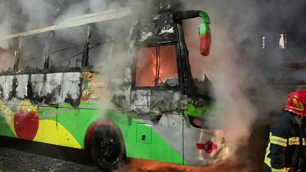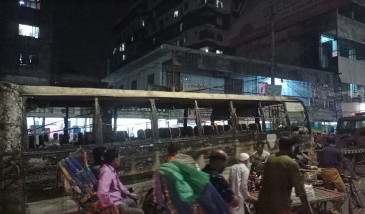 রাজধানীতে সোয়া ঘণ্টার ব্যবধানে ৪ বাসে আগুন