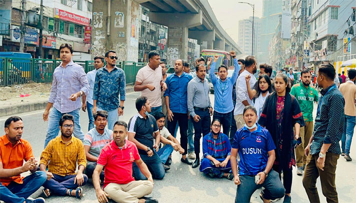 অবরোধের সমর্থনে মালিবাগে ছাত্রদলের পিকেটিং