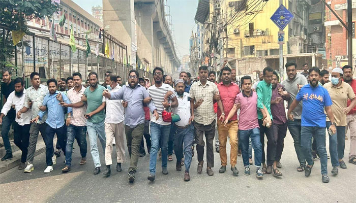 রাজধানীতে ঢাকা দক্ষিণ স্বেচ্ছাসেবক দলের বিক্ষোভ