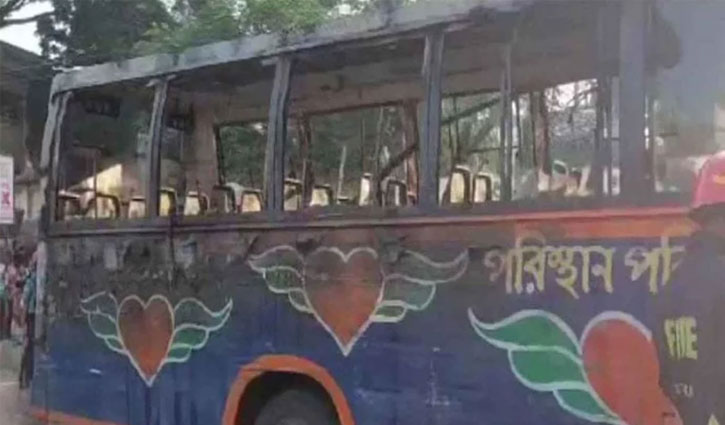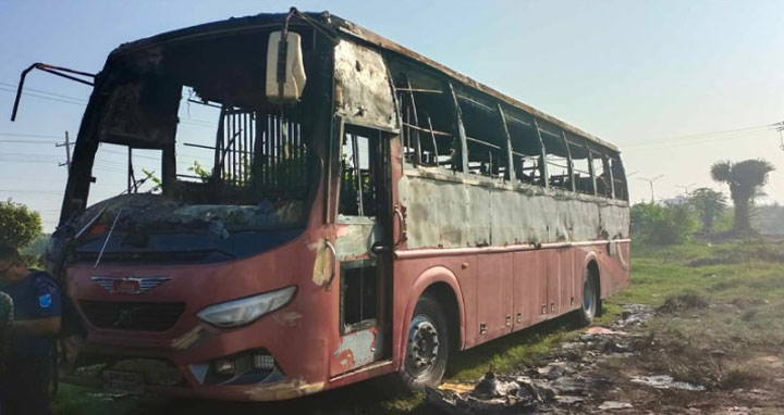 সাত সকালেই হেমায়েতপুরে বাসে আগুন