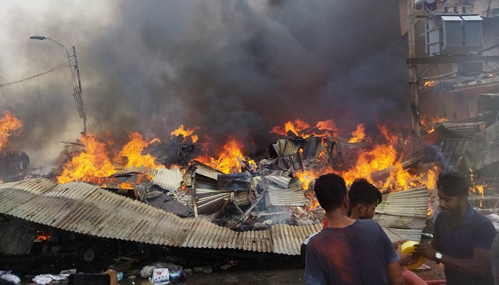 বঙ্গবাজারের আগুন : বাড়ছে তীব্রতা, নিয়ন্ত্রণের চেষ্টায় ৫০ ইউনিট