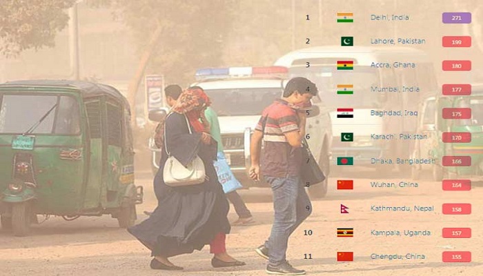 বিশ্বে বায়ুদূষণে রাজধানী ঢাকা আজ সপ্তম। মঙ্গলবার (২১ ফেব্রুয়ারি) সকাল সাড়ে ৯টায় ঢাকার এয়ার কোয়ালিটি ইনডেক্সে (একিউআই) স্কোর ১৬৪ রেকর্ড