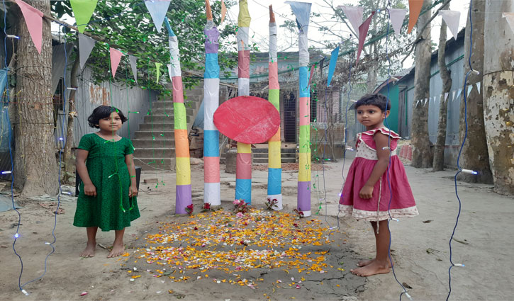 কলাগাছের তৈরি শহিদ মিনারে শিশুদের ভালোবাসা