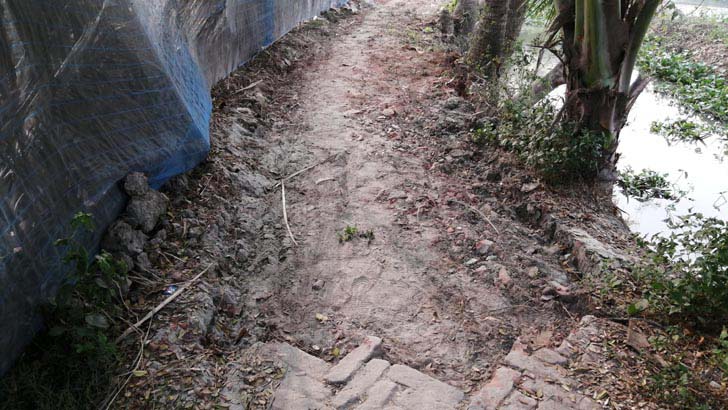 সড়কের ইট তুলে নিয়ে বাড়ির কাজে ব্যবহার!