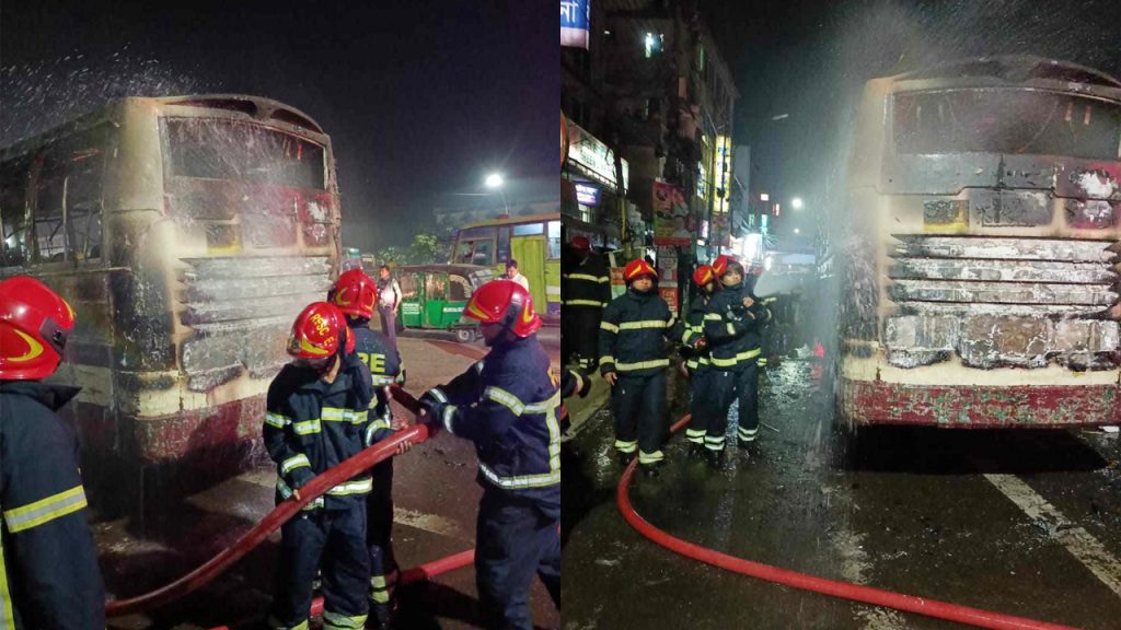 রাজধানীর শনিরআখড়ায় বাসে আগুন