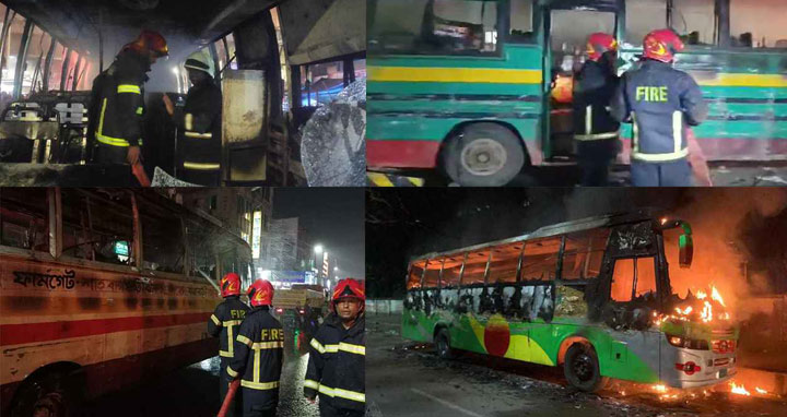 সারাদেশে ১০ ঘণ্টায় ১২ যানবাহনে আগুন