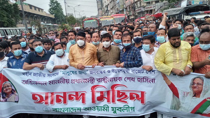 উন্নয়নমুখী বাজেটকে স্বাগত জানিয়ে যুবলীগের আনন্দ মিছিল