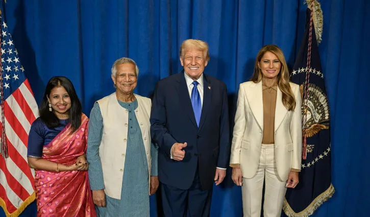 জাতিসংঘ সাধারণ পরিষদের অধিবেশনকে ঘিরে মার্কিন প্রেসিডেন্টের দেওয়া সংবর্ধনা অনুষ্ঠানে অংশ নেন বাংলাদেশের প্রধান উপদেষ্টা অধ্যাপক মুহাম্মদ ইউনূস। সেখানে ট্রাম্প
