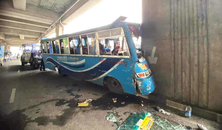 মেট্রোরেলের পিলারে বাসের ধাক্কায় আহত ১০, কিশোর চালক আটক