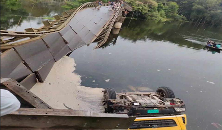টাঙ্গাইলের দেলদুয়ারে ব্রিজ ভেঙে ট্রাক পানিতে, যোগাযোগ বিচ্ছিন্ন