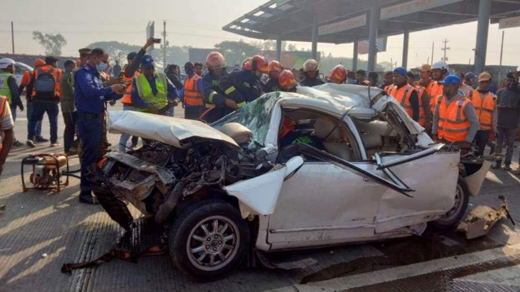 প্রাইভেট কারের উপর কাভার্ডভ্যান, প্রাণে বাঁচলো ৫ যাত্রী